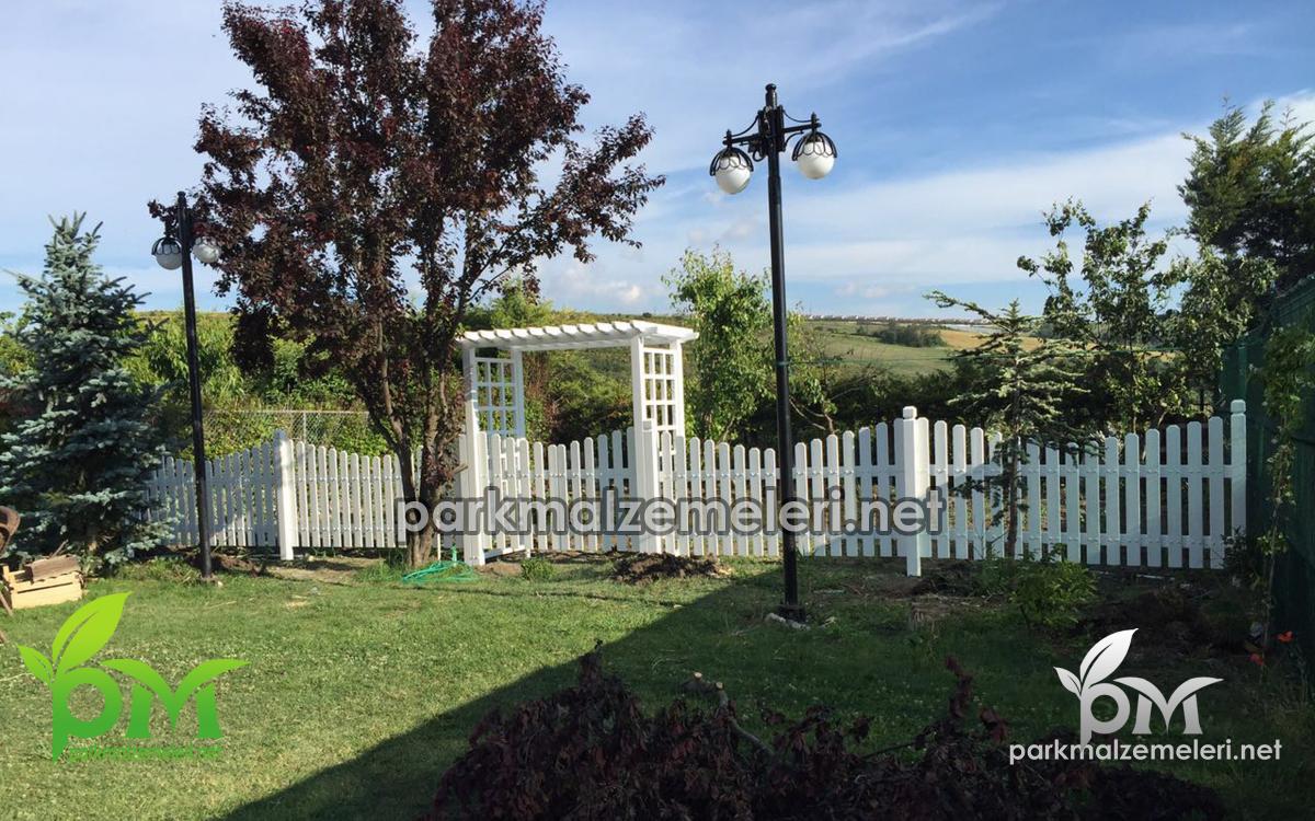 AHŞAP ÇİT KAPI, AHŞAP ÇİT ve PERGOLA ; Park malzemelerinin olmazsa olmazlarından sayılan ahşap çit, çit kapısı, ve pergola zahmetli olmasına rağmen beyaz boyayla boyanarak güzel ve dayanıklı bir görünüme sahip oldu. Çitlerin ve ahşap çit kapısının, çit uzunlukları değişik boyutlarda tasarlanarak görsel olarak güçlendirildi. Hem zarif, hemde zamanda güçlü ve dayanıklı bir görünüme sahip olan çitler için 4 kat beyaz boya kullanılarak, boya ahşaba içine işleyerek yedirildi. 10 * 10 dikmelere monte edilen çitler, dikmelerinde toprağa betonlanmasıyla sabitlendi.